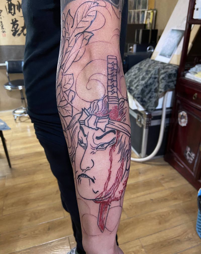 当前位置: 首页 >河北省邢台市纹身店-小黑刺青纹身专营店纹身图案>生首纹身图片_手臂老传统纹身图案