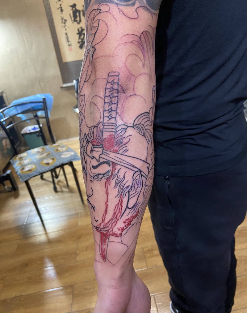 当前位置: 首页 >河北省邢台市纹身店-小黑刺青纹身专营店纹身图案>生首纹身图片_手臂老传统纹身图案