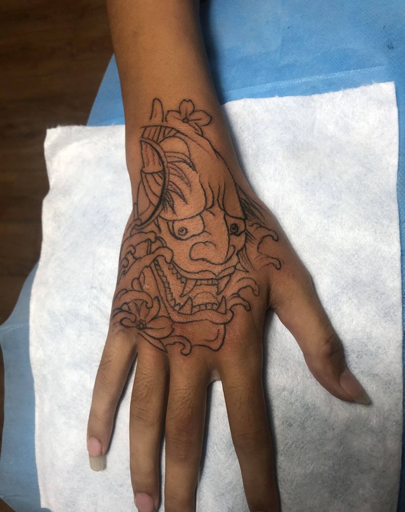 般若割线纹身图片_手部纹身图案