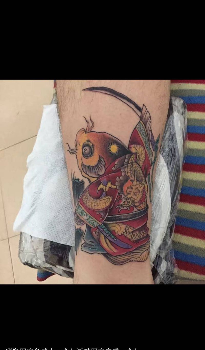 • T包小腿吹火男+阿多福纹身图片_腿部老传统新传统吹火男阿