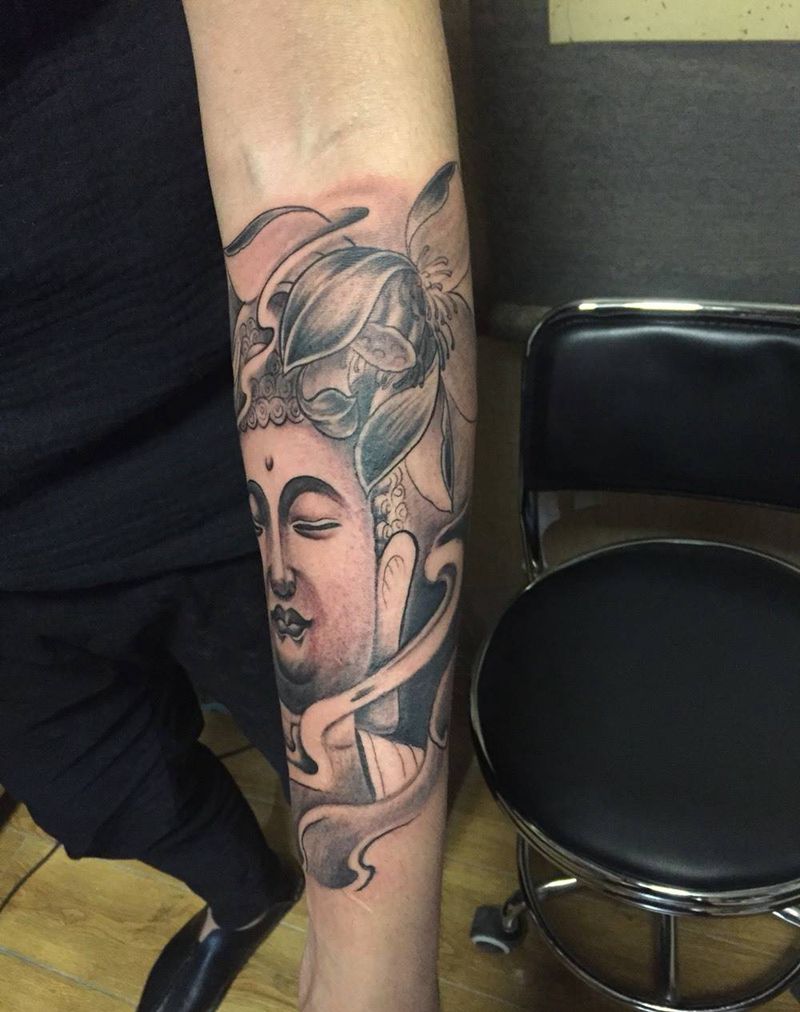 当前位置: 首页 >河北省邢台市纹身店-小黑刺青纹身专营店纹身图案>小臂佛像未完成!纹身图片