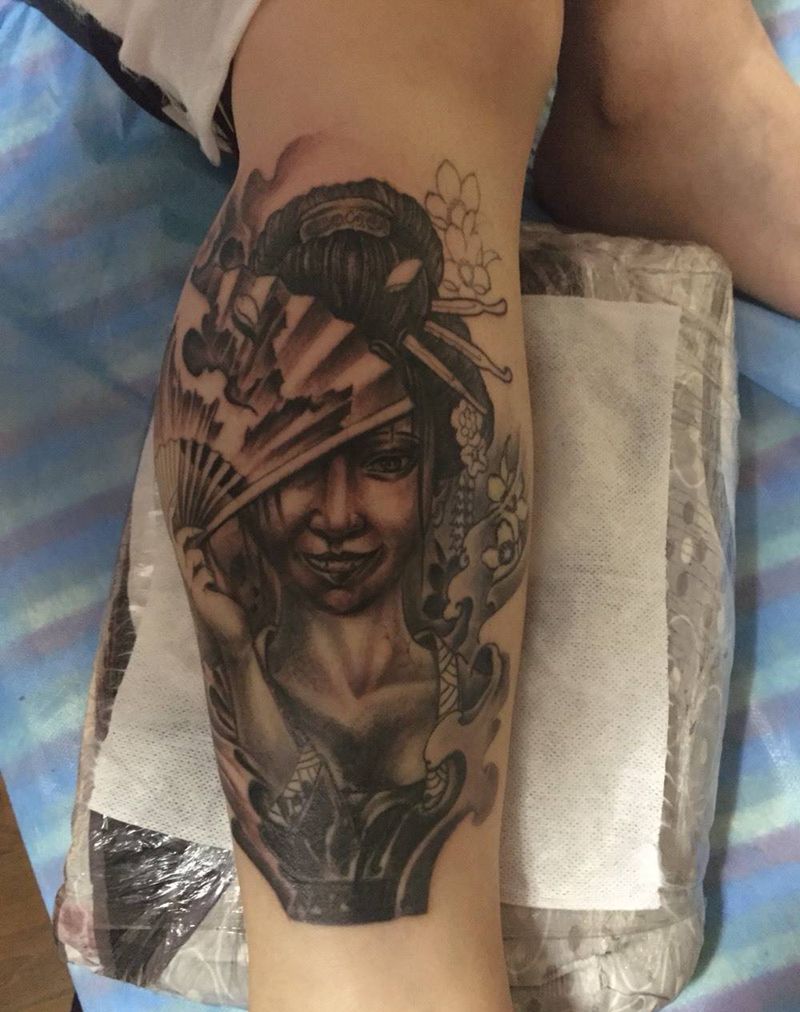 当前位置: 首页 >河北省邢台市纹身店-小黑刺青纹身专营店纹身图案>艺妓覆盖纹身图片