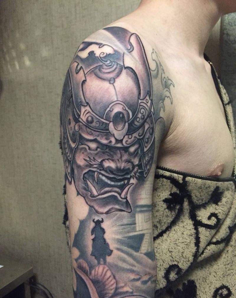 当前位置: 首页 >河北省邢台市纹身店-小黑刺青纹身专营店纹身图案>日本武士大臂完成纹身图片