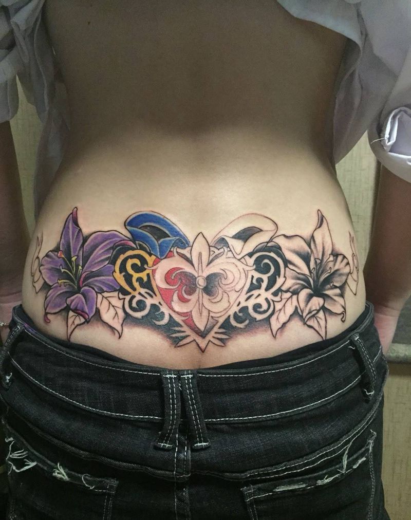 • 时尚性感的腹部莲花纹身图案