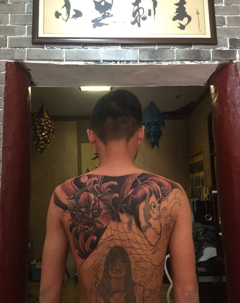 当前位置: 首页 >河北省邢台市纹身店-小黑刺青纹身专营店纹身图案>后背覆盖未完成下次继续!纹身图片