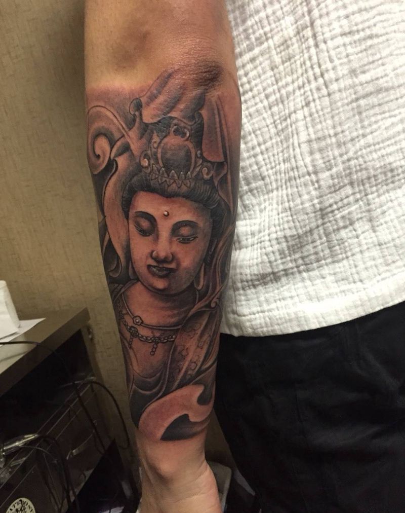 当前位置: 首页 >河北省邢台市纹身店-小黑刺青纹身专营店纹身图案>小臂观音菩萨!纹身图片