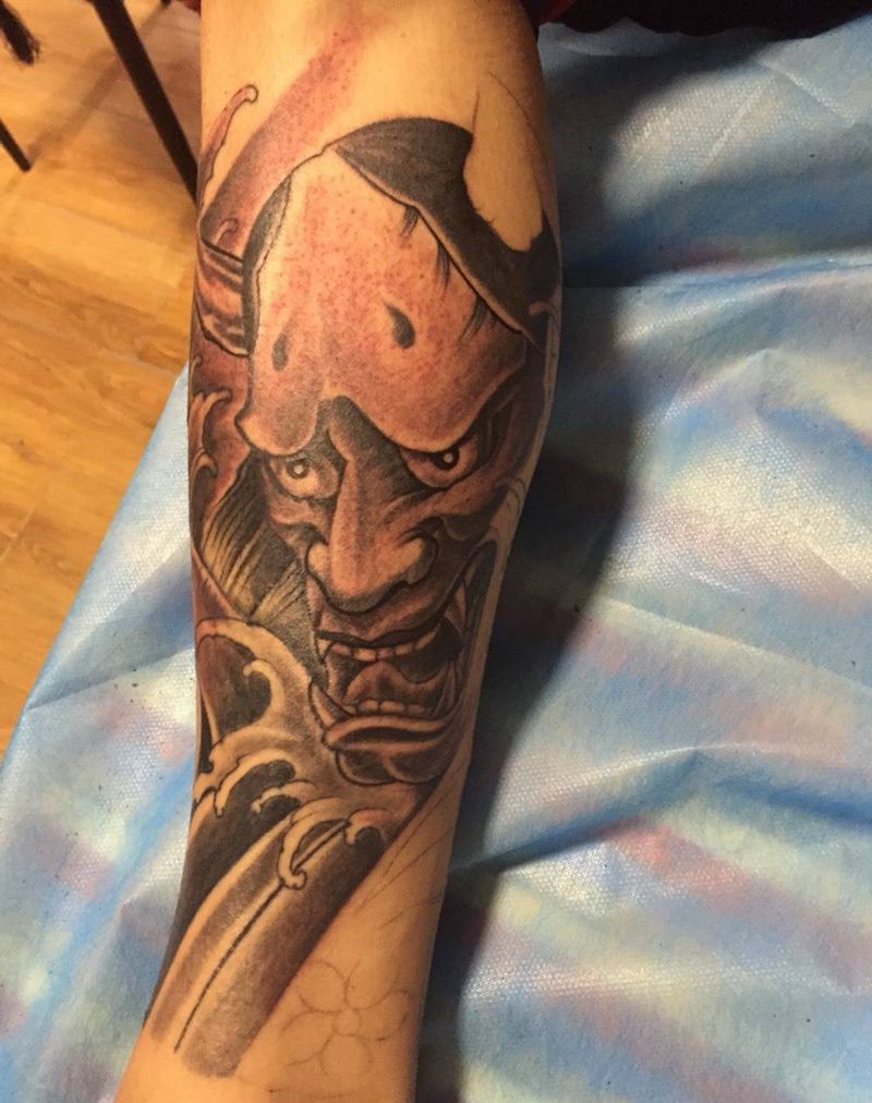 当前位置: 首页 >河北省邢台市纹身店-小黑刺青纹身专营店纹身图案>般若小腿!纹身图片