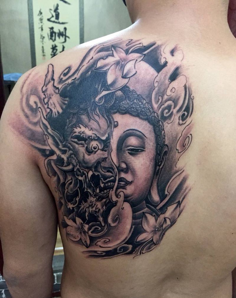 • 黑灰满背纹身图案