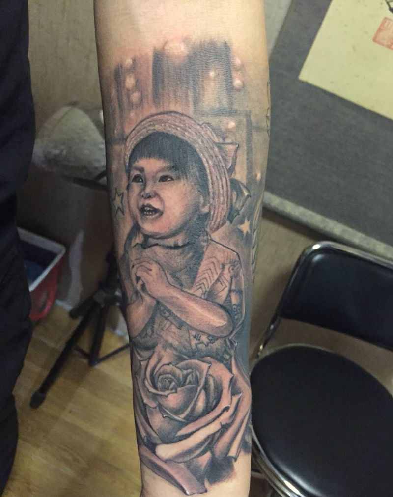 当前位置: 首页 >河北省邢台市纹身店-小黑刺青纹身专营店纹身图案>照片父爱如山!纹身图片