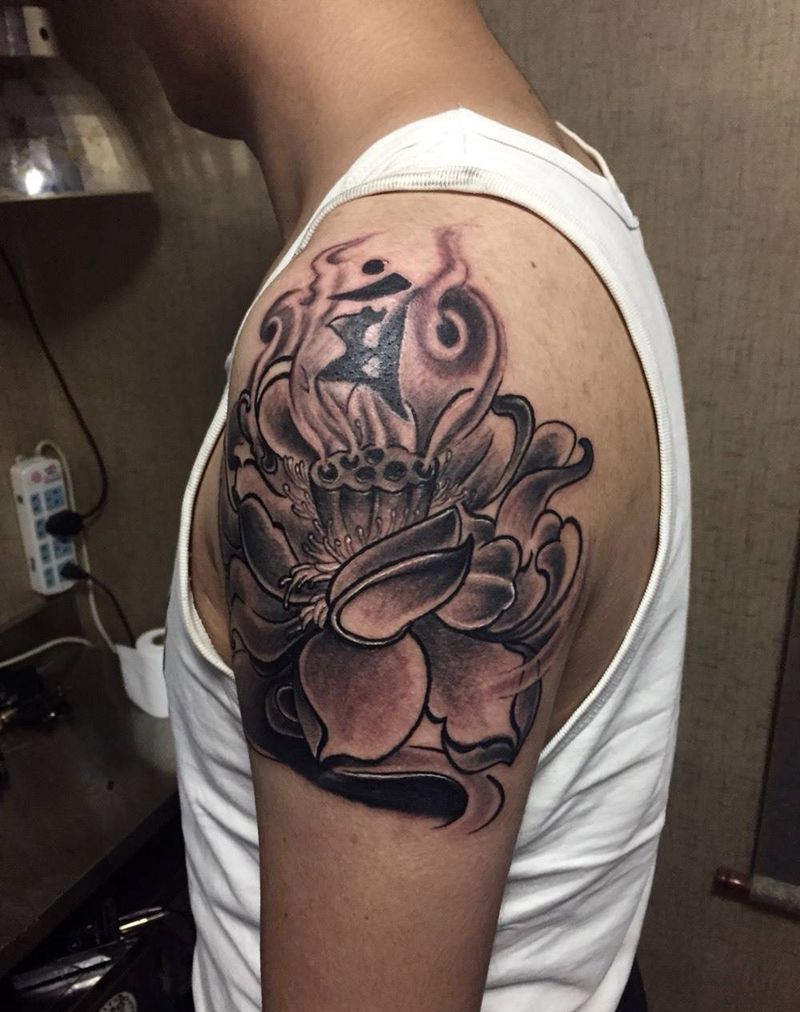 当前位置: 首页 >河北省邢台市纹身店-小黑刺青纹身专营店纹身图案>覆盖荷花纹身图片