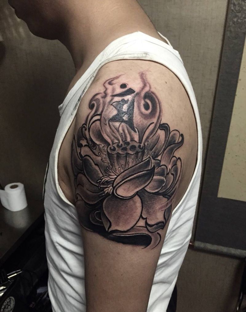 当前位置: 首页 >河北省邢台市纹身店-小黑刺青纹身专营店纹身图案>覆盖荷花纹身图片