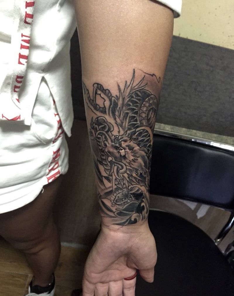 • T网红王老大花腿龙纹身图片_腿部新传统纹身图案