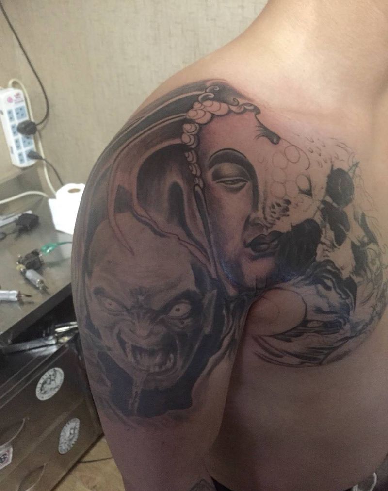 • 纹身吧推荐的披肩图腾半胛纹身图案作品展示