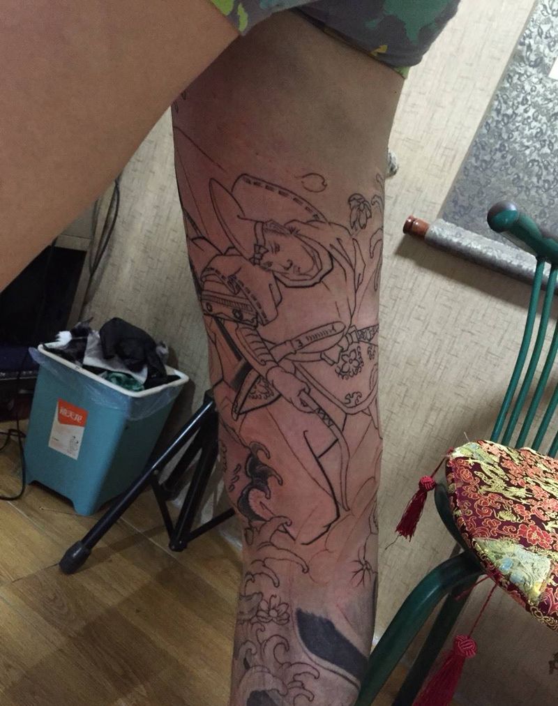 当前位置: 首页 >河北省邢台市纹身店-小黑刺青纹身专营店纹身图案>日式花腿割线纹身图片