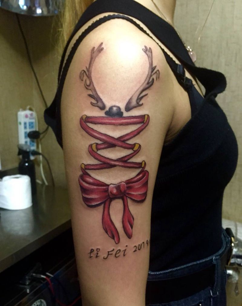 当前位置: 首页 >河北省邢台市纹身店-小黑刺青纹身专营店纹身图案>丝带蝴蝶结小清新!纹身图片