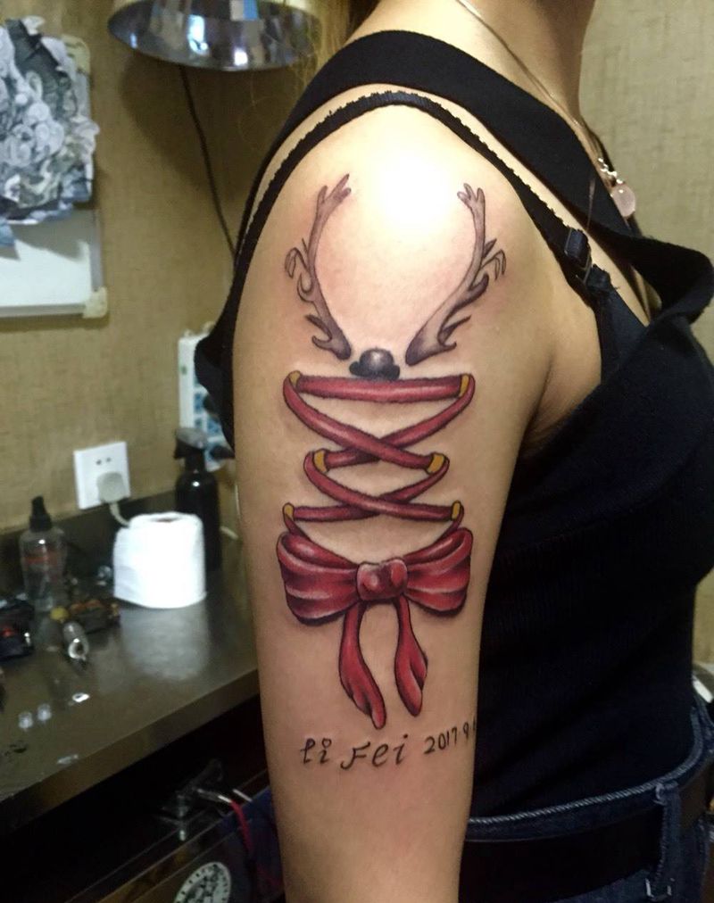 当前位置: 首页 >河北省邢台市纹身店-小黑刺青纹身专营店纹身图案>丝带蝴蝶结小清新!纹身图片