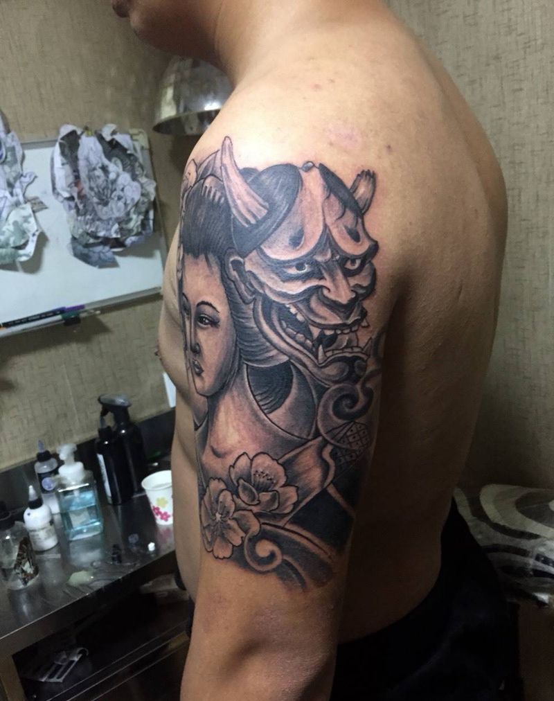 当前位置: 首页 >河北省邢台市纹身店-小黑刺青纹身专营店纹身图案>艺妓纹身图片