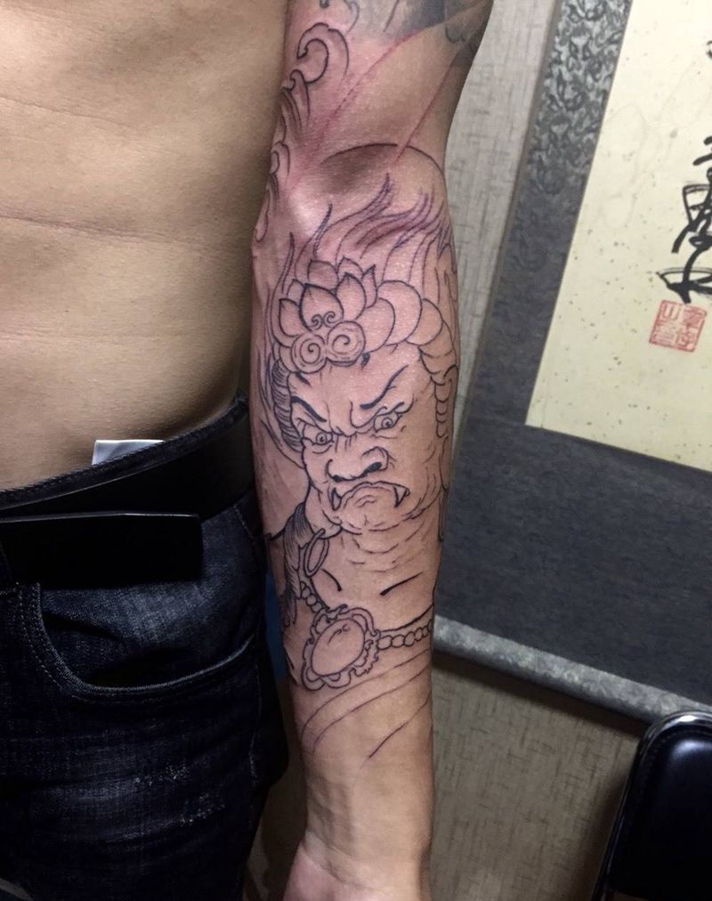 当前位置: 首页 >河北省邢台市纹身店-小黑刺青纹身专营店纹身图案>不动明王线条纹身图片