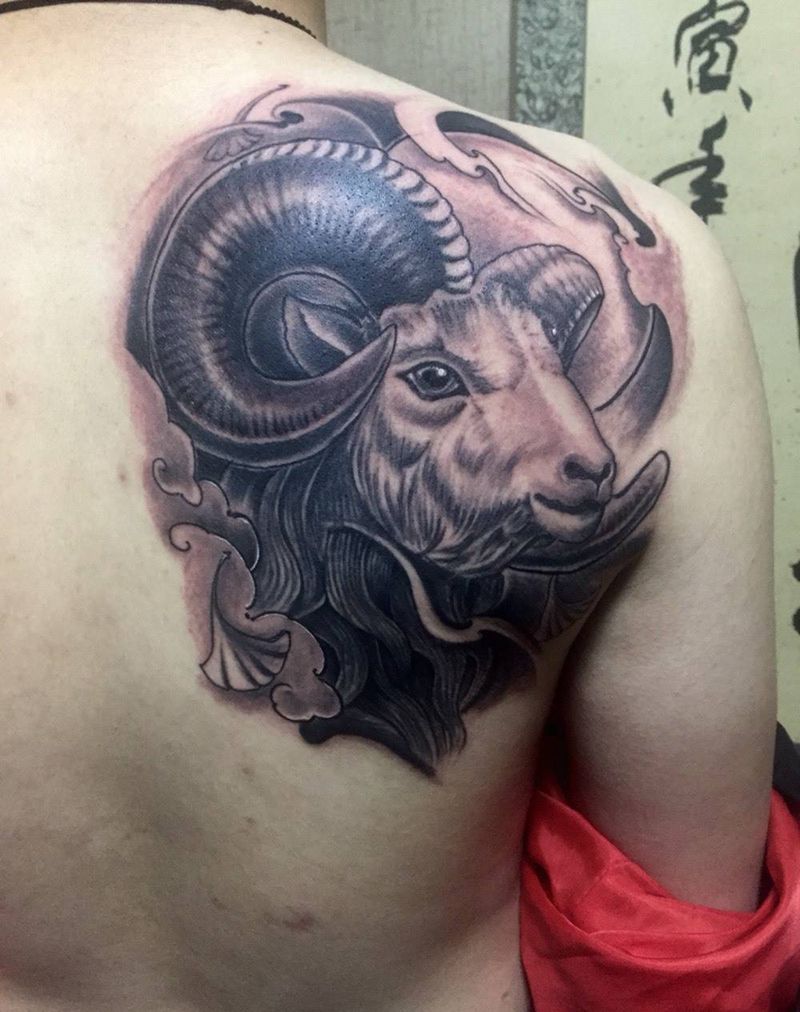 当前位置: 首页 >河北省邢台市纹身店-小黑刺青纹身专营店纹身图案>羊头纹身!纹身图片