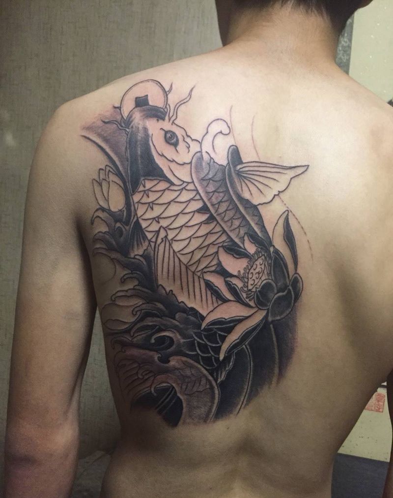 当前位置: 首页 >河北省邢台市纹身店-小黑刺青纹身专营店纹身图案>后肩鱼未完成!纹身图片