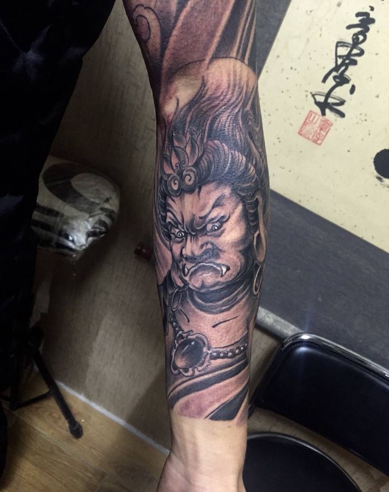 当前位置: 首页 >河北省邢台市纹身店-小黑刺青纹身专营店纹身图案>不动尊菩萨!纹身图片