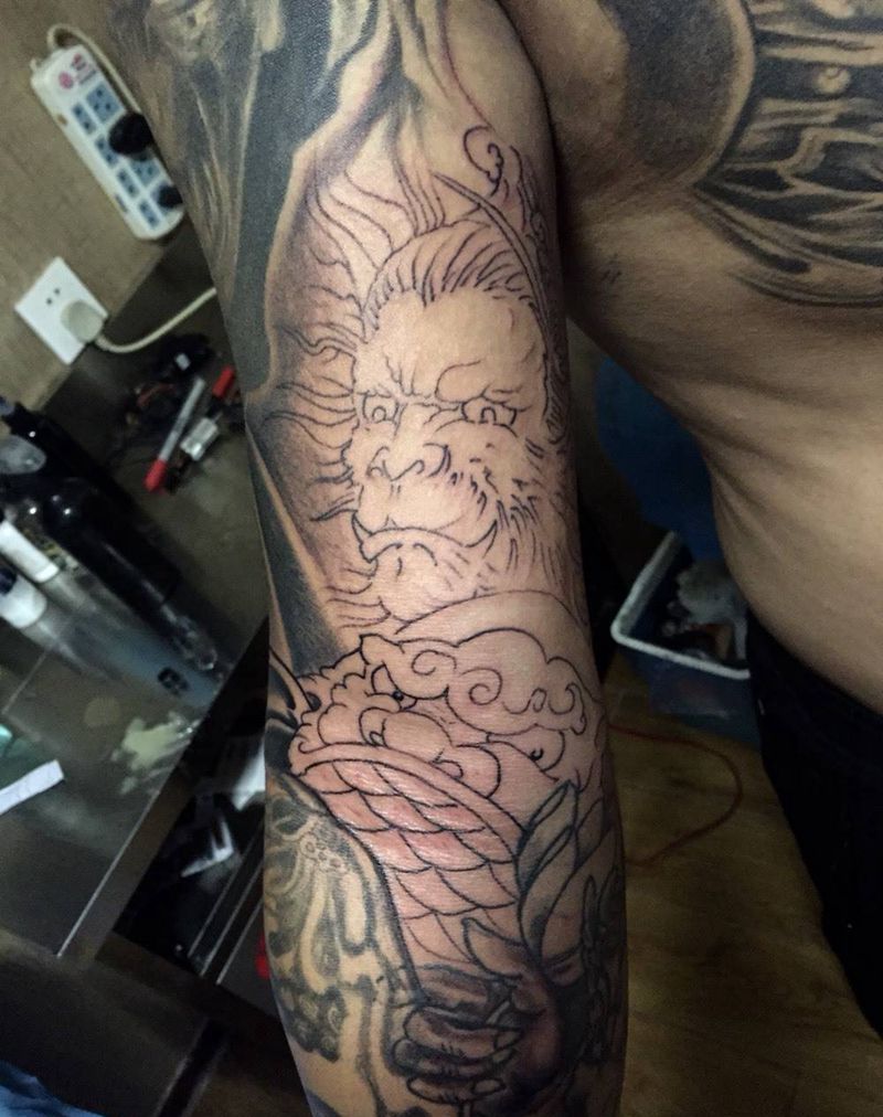 当前位置: 首页 >河北省邢台市纹身店-小黑刺青纹身专营店纹身图案>猴子割线未完成!纹身图片