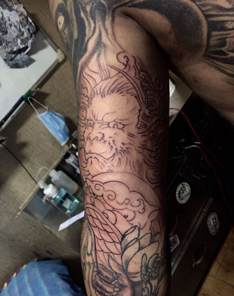 当前位置: 首页 >河北省邢台市纹身店-小黑刺青纹身专营店纹身图案>猴子割线未完成!纹身图片