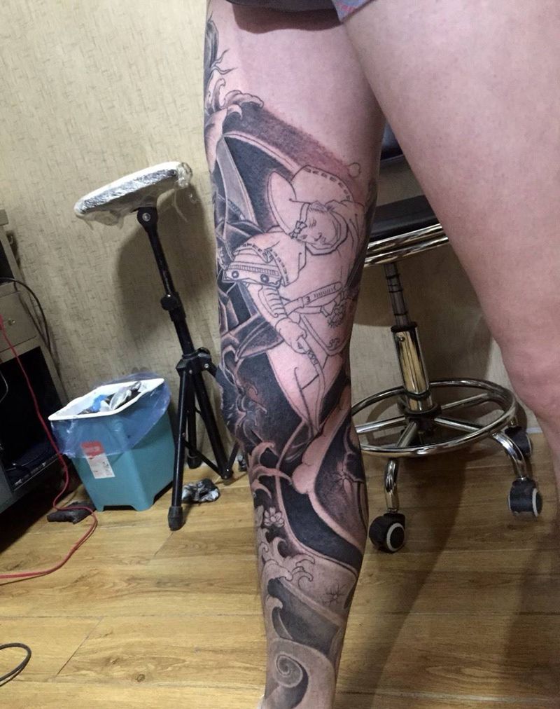 当前位置: 首页 >河北省邢台市纹身店-小黑刺青纹身专营店纹身图案>鬼若玩花腿未完成纹身图片