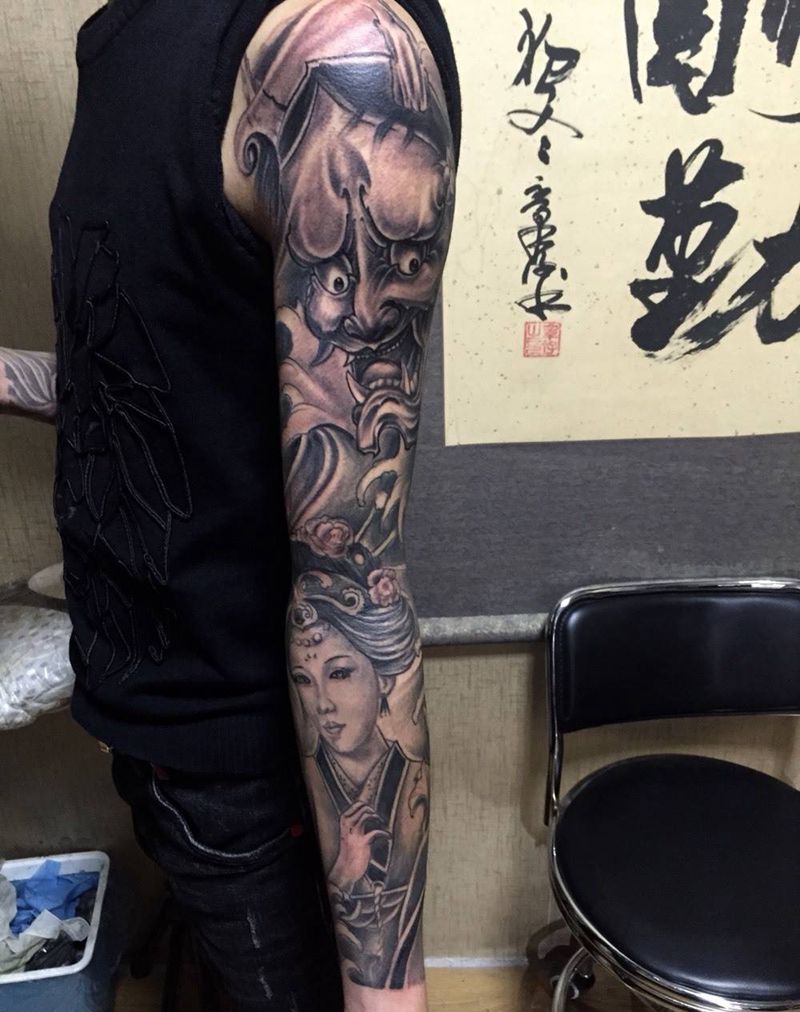 当前位置: 首页 >河北省邢台市纹身店-小黑刺青纹身专营店纹身图案>黑白花臂完成纹身图片