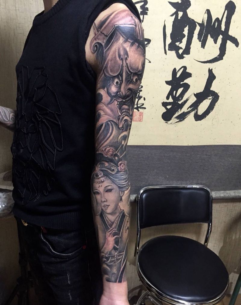 当前位置: 首页 >河北省邢台市纹身店-小黑刺青纹身专营店纹身图案>黑白花臂完成纹身图片