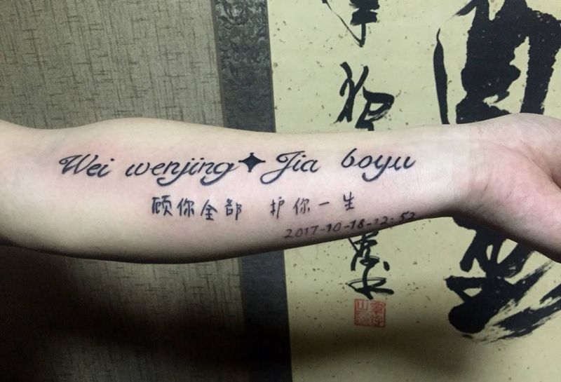 • T家庭图,一家四口生日纪念!纹身图片_手臂纹身图案