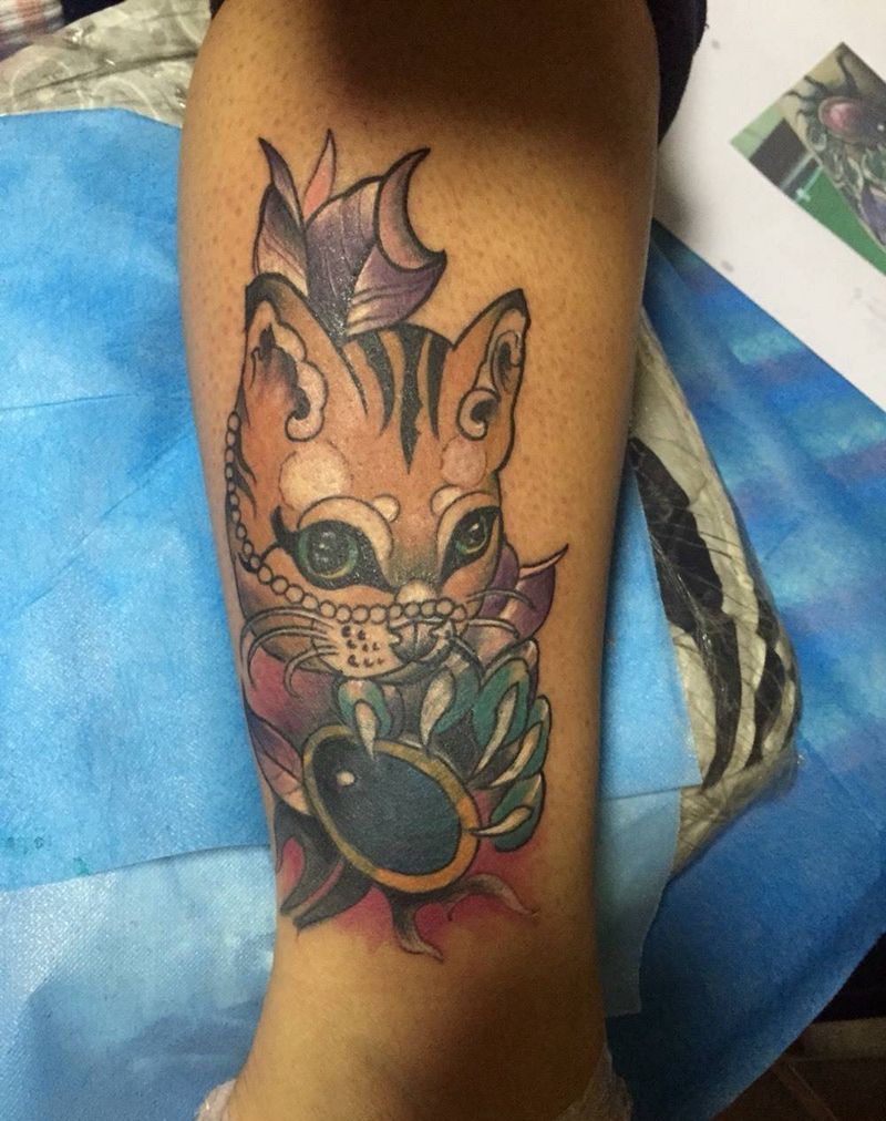 • T网红王老大花腿龙纹身图片_腿部新传统纹身图案