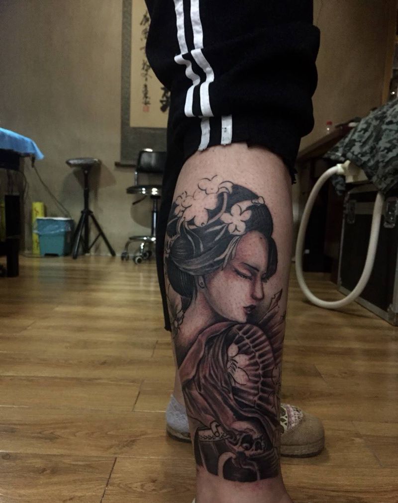 • T网红王老大花腿龙纹身图片_腿部新传统纹身图案