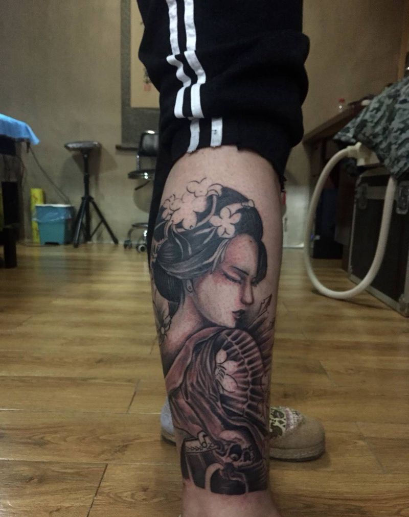 • T网红王老大花腿龙纹身图片_腿部新传统纹身图案