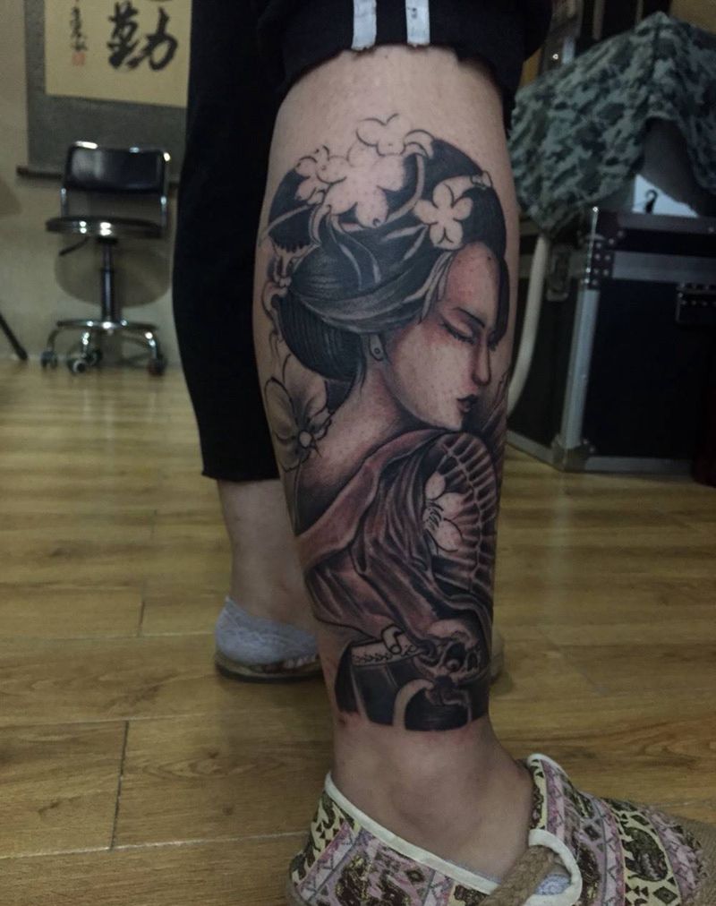 • T网红王老大花腿龙纹身图片_腿部新传统纹身图案