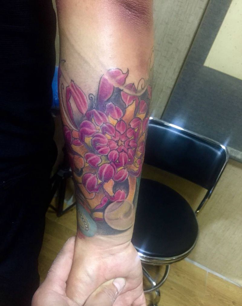 彩色爆菊纹身图片