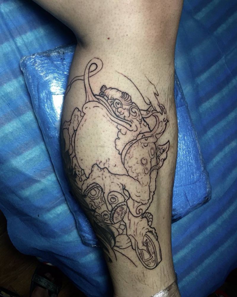 • T网红王老大花腿龙纹身图片_腿部新传统纹身图案