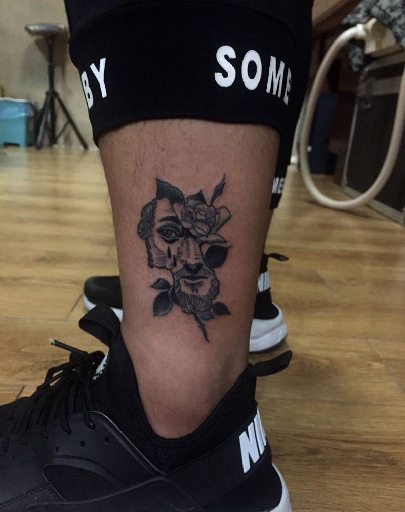 • T包小腿吹火男+阿多福纹身图片_腿部老传统新传统吹火男阿