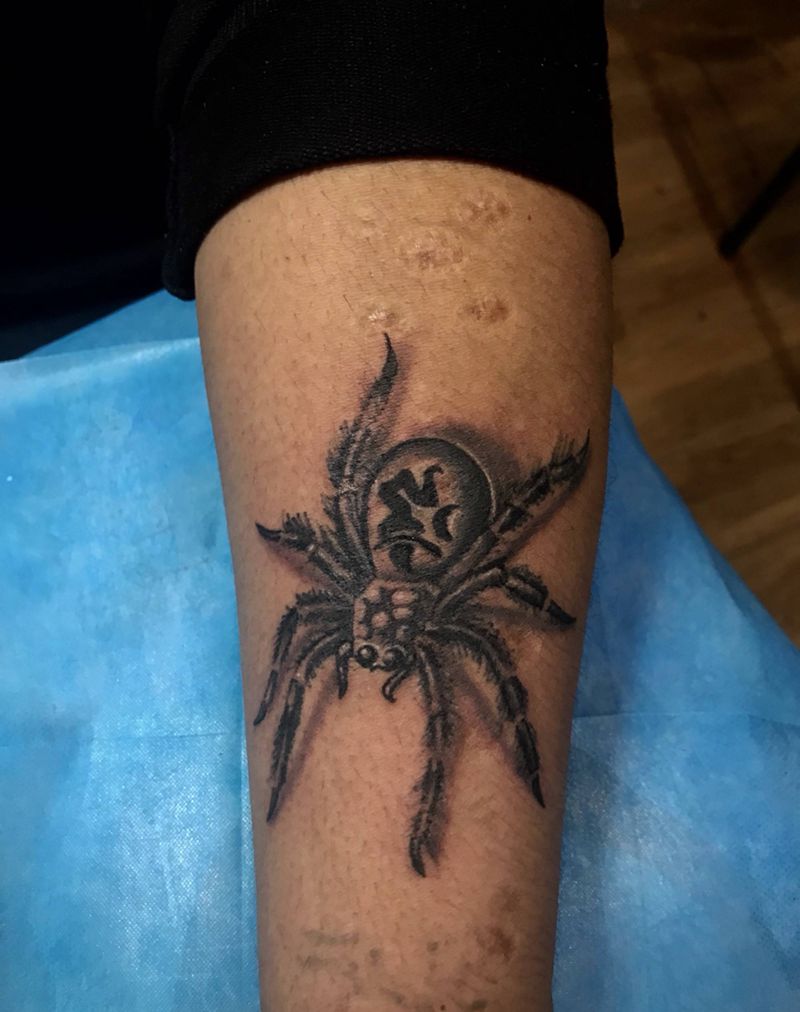 当前位置: 首页 >河北省邢台市纹身店-小黑刺青纹身专营店纹身图案>蜘蛛覆盖纹身图片