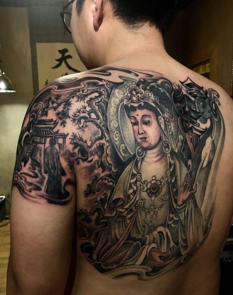 当前位置: 首页 >河北省邢台市纹身店-小黑刺青纹身专营店纹身图案>菩萨覆盖图案纹身图片