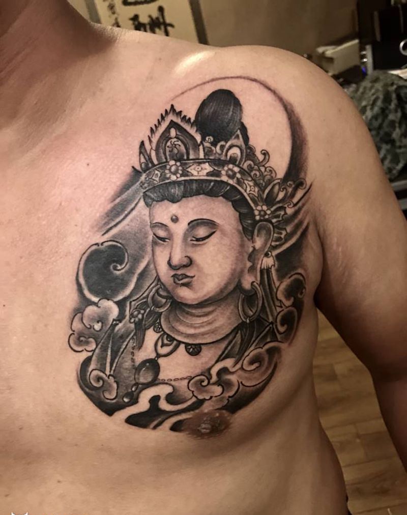 菩萨覆盖图案纹身图片_胸部新传统纹身图案