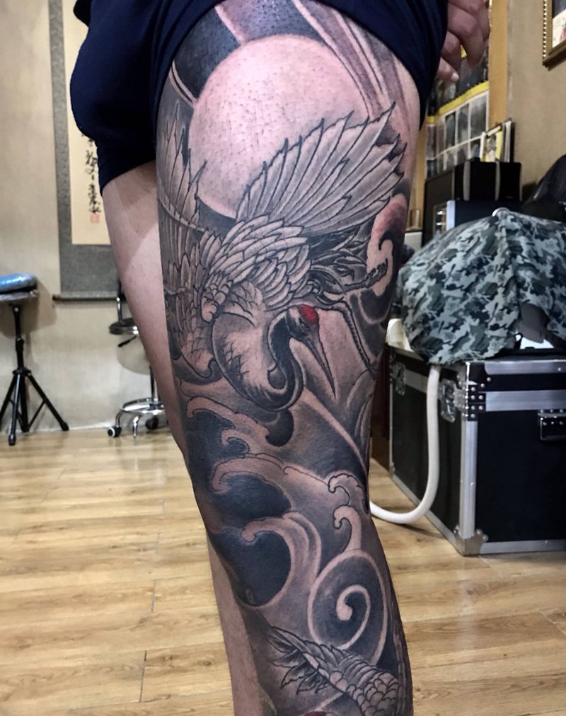 • T网红王老大花腿龙纹身图片_腿部新传统纹身图案