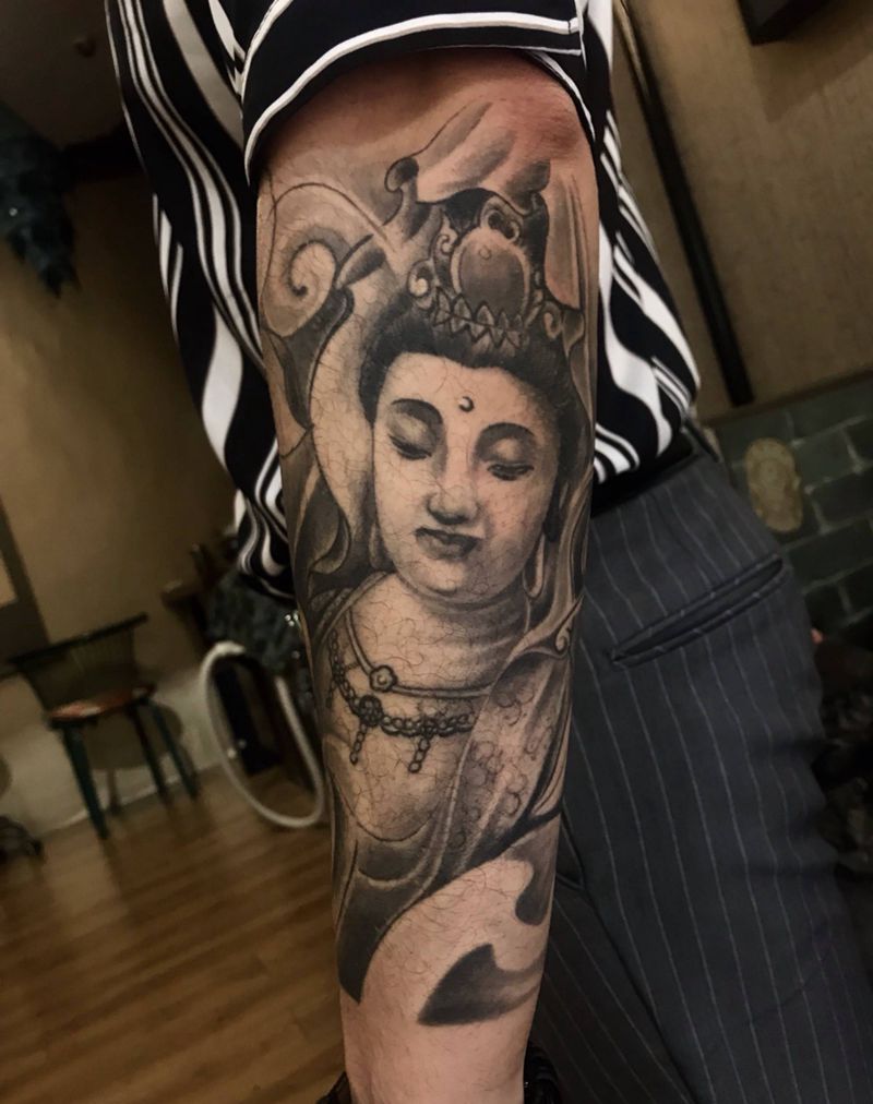 当前位置: 首页 >河北省邢台市纹身店-小黑刺青纹身专营店纹身图案>观音大士纹身图片