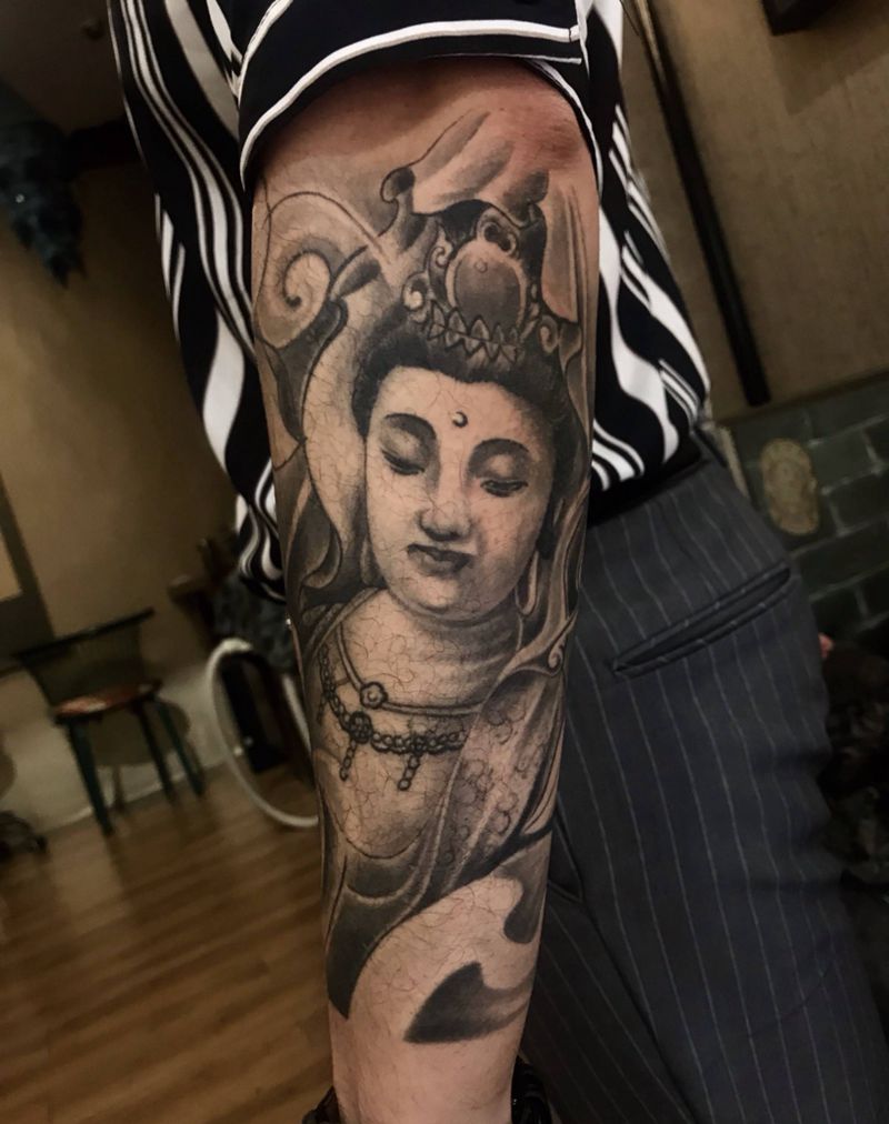 当前位置: 首页 >河北省邢台市纹身店-小黑刺青纹身专营店纹身图案>观音大士纹身图片