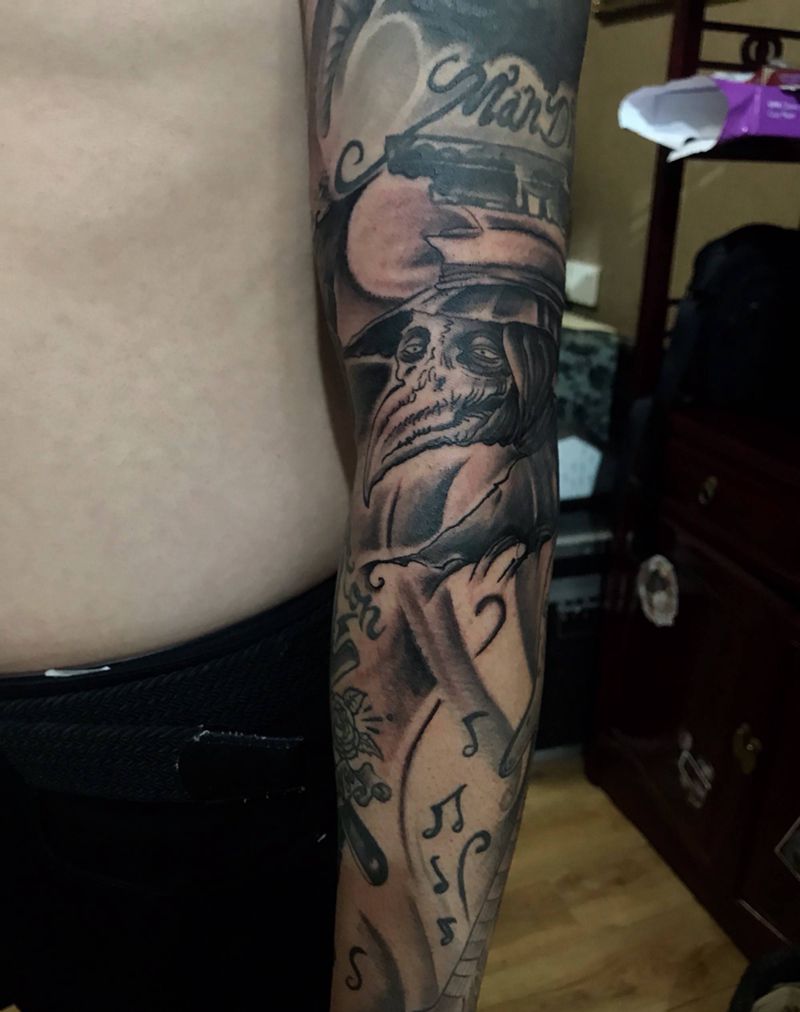 当前位置: 首页 >河北省邢台市纹身店-小黑刺青纹身专营店纹身图案>乌鸦人纹身图片