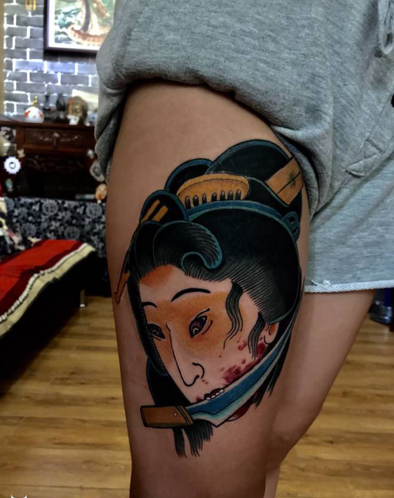 当前位置: 首页 >河北省邢台市纹身店-小黑刺青纹身专营店纹身图案>日式艺妓纹身图片_腿部纹身图案