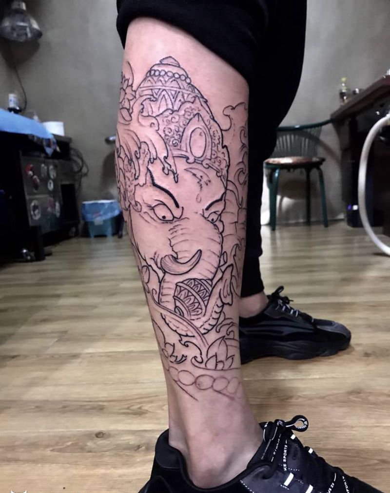 当前位置: 首页 >河北省邢台市纹身店-小黑刺青纹身专营店纹身图案>象神线(未完成)纹身图片_腿部纹身图案