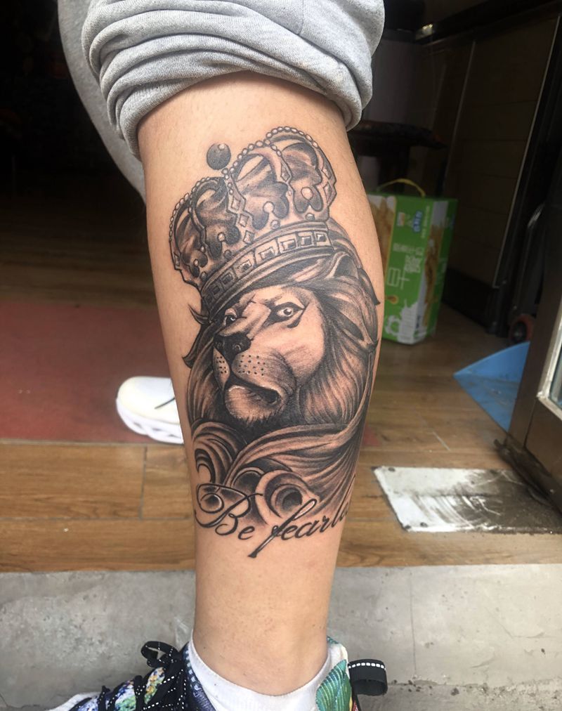 当前位置: 首页 >河北省邢台市纹身店-小黑刺青纹身专营店纹身图案>狮王纹身图片_腿部纹身图案