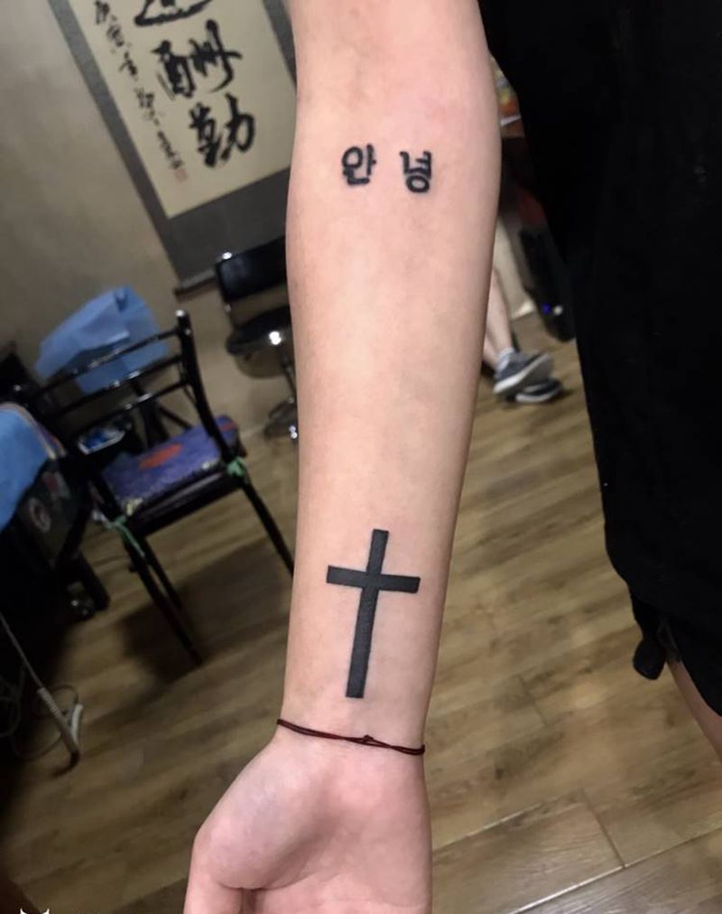 当前位置: 首页 >河北省邢台市纹身店-小黑刺青纹身专营店纹身图案>图腾十字架纹身图片_手臂图腾纹身图案