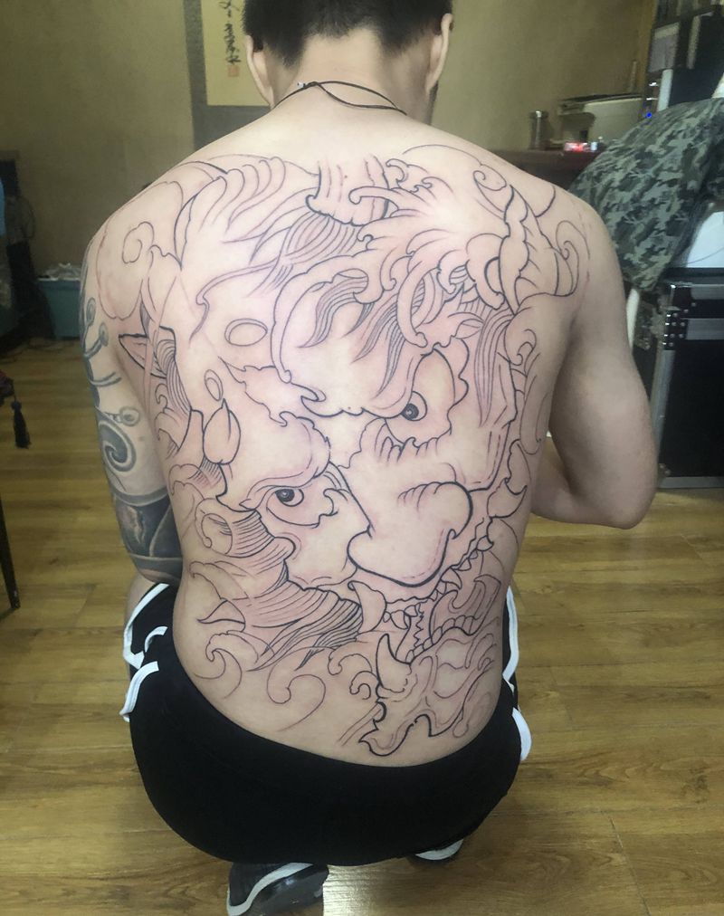 当前位置: 首页 >河北省邢台市纹身店-小黑刺青纹身专营店纹身图案>般若后背割线纹身图片_背部纹身图案